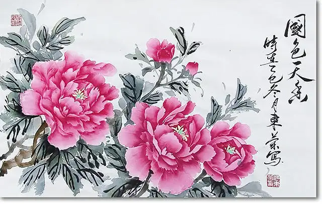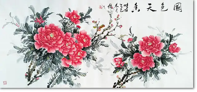 常玉娥女士的这幅《国色天香》,以浓艳饱满的胭脂红铺陈牡丹花瓣,以苍润淋漓的墨色勾勒枝叶,既承续了传统工笔重彩的富贵气象,又融入了会派牡丹灵动洒脱的笔墨意趣,恰是当代中式空间美学的绝佳载体。在现代家居与商业空间中,这幅作品不仅是视觉焦点,更能以东方雅韵重构空间的精神内核。
