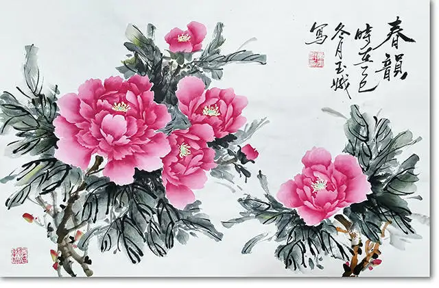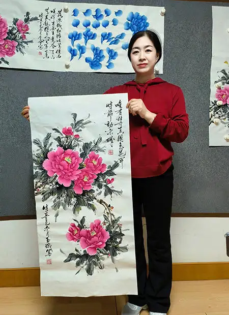 更重要的是,常玉娥的牡丹画承载着“富贵吉祥”的文化意涵,这与现代空间美学中“精神疗愈”的需求高度契合。在快节奏的当代生活里,人们渴望在空间中安放情绪、寄托期许,这幅画作以牡丹的雍容姿态传递出松弛而温暖的情绪价值,让观者在视觉享受中获得精神慰藉。同时,其笔墨间的灵动气韵,也与现代空间追求的“轻中式”审美不谋而合——摒弃繁复装饰,以写意笔墨传递东方意境,让传统美学在当代空间中实现“润物细无声”的渗透。